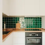 - ❓¿Hay una cocina disponible en el apartamento para uso de los huéspedes?Sí, este apartamento está equipado con una cocina completa y ofrece también un horno de microondas, un hervidor eléctrico y cafetera/tetera.